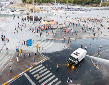 التظاهرات غير المسبوقة ضد حكومة أردوغان . ونجحت الشرطة في إخلاء الساحة